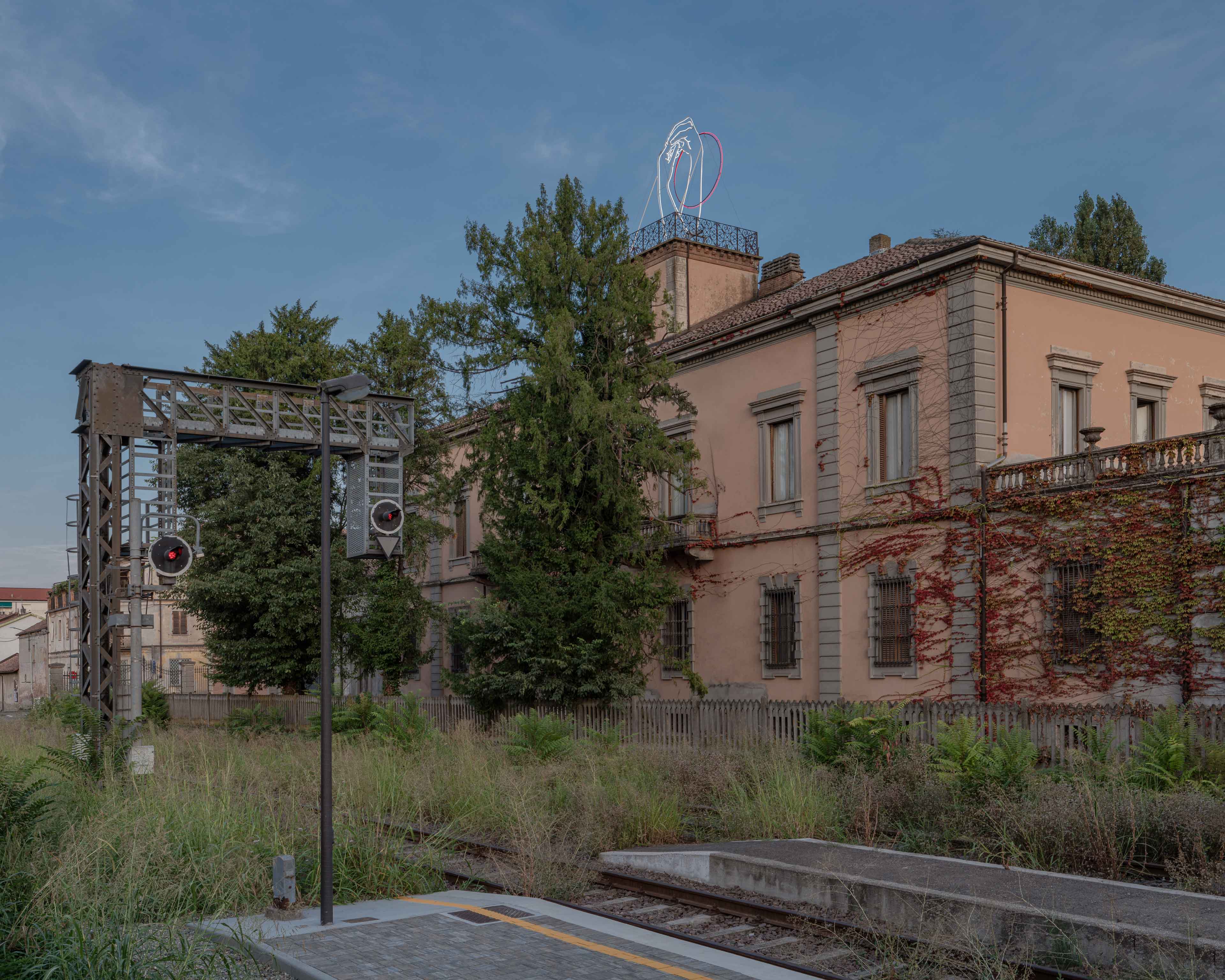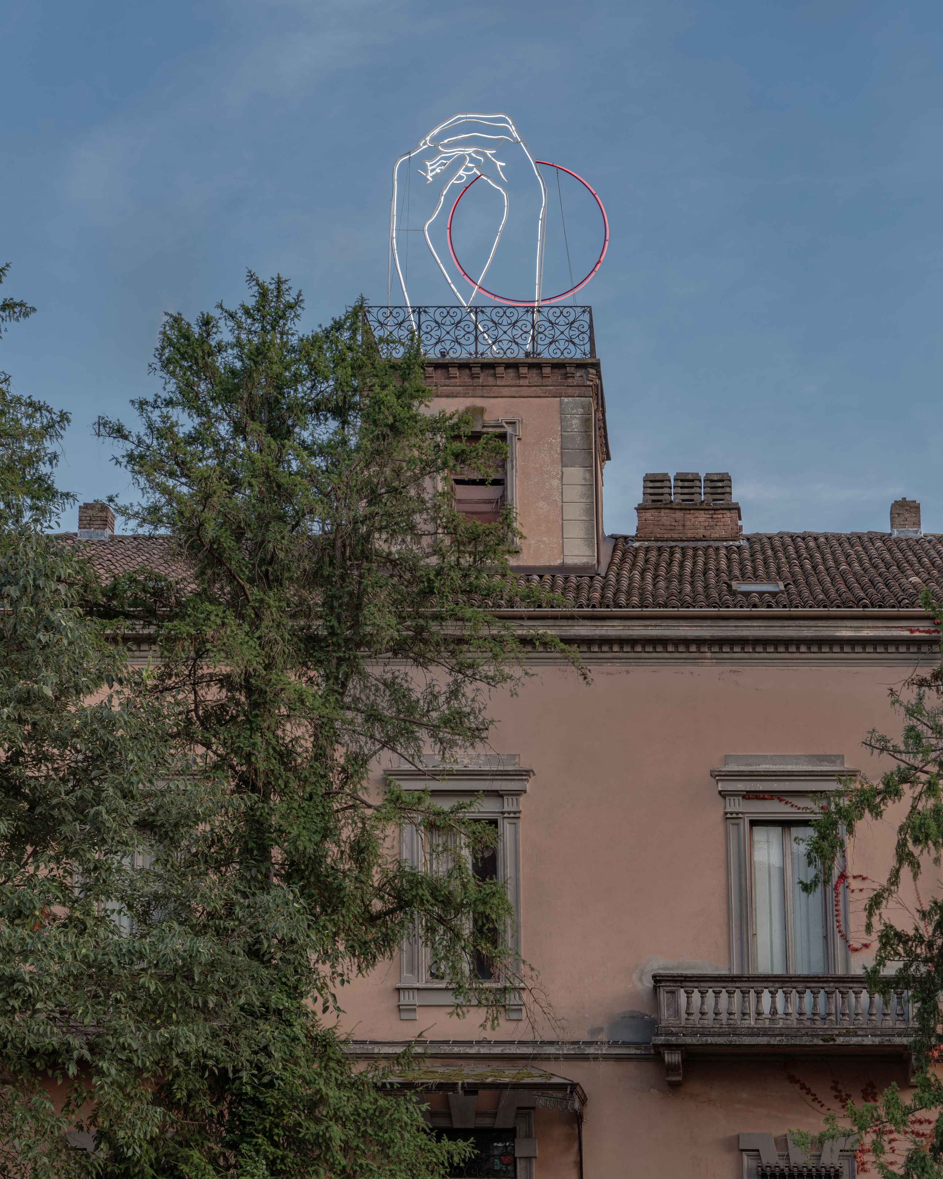 Primo artista invitato è PATRICK TUTTOFUOCO che per l’occasione presenta un progetto corposo che si sviluppa dagli spazi esterni fino alle aree della linea di produzione. A cura di Giorgio Galotti la mostra coinvolge alcune opere storiche oltre alla nuova produzione neon dal titolo Shape shifting (2024) immaginata per il paesaggio circostante e intende tracciare il percorso dell’artista dai primi anni 2000 fino ad oggi, individuando alcune opere che ruotano intorno al concetto del tempo, tema caro all’artista, ricostruito in relazione all’esperienza umana e alla sua ciclicità. Le braccia e le mani diventano simboli di rappresentazione del paesaggio, della popolazione e del territorio, riflettendo e ampliando il senso della produzione del Monferrato, inteso come frutto dello sforzo fisico ed intellettuale.